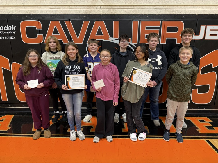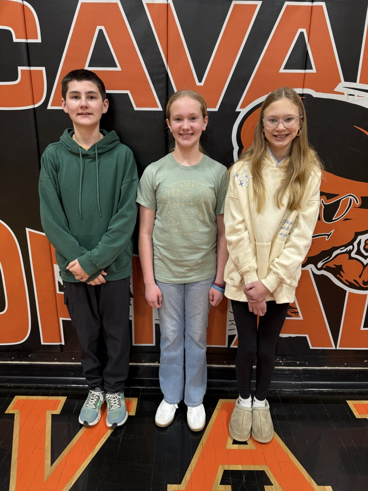 Cavalier students participated in a Spelling Bee today. Congratulations to our top 3 spellers who will move on to the Pembina County Spelling Bee in February.