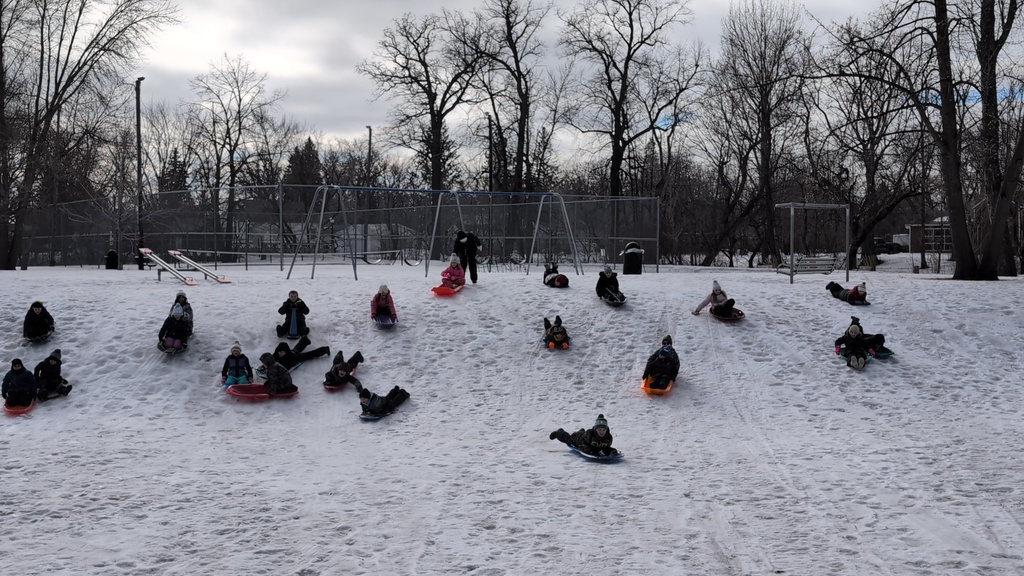 Mrs. Hay's second grade class wrapped up their reading unit on traditions. Students wrote opinion letters to Mr. Moquist as to why they should have a sledding tradition. They had reasons like following school rules and character traits, getting out for some exercise, and making memories. We had the best weather making today a blast.